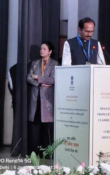 மத்தியக் கல்வி அமைச்சர் திரு. தர்மேந்திர பிரதான் அவர்கள் இன்று (06.01.2026) டெல்லியில் நடைபெற்ற விழாவில் செம்மொழித் தமிழாய்வு மத்திய நிறுவனத்தின் 13 புதிய நூல்களை (புறநானூறு, பதிற்றுப்பத்து, பத்துப்பாட்டு, நான்மணிக்கடிகை, நானாற்பது, முத்தொள்ளாயிரம் (மலையாள மொழிபெயர்ப்பு) சிலப்பதிலாரம் (தெலுங்கு மொழிபெயர்ப்பு) தமிழ்நாட்டில் இராமர் திருக்கோயில்கள் (தமிழ் & இந்தி மொழிபெயர்ப்பு), தமிழ்நாட்டு மரச் சிற்பங்கள், சங்க இலக்கிய அகராதி, அகநானூற்று அகரமுதலி- வினைச்சொற்கள், அகநானூற்று அகரமுதலி - பெயர்ச்சொற்கள்)