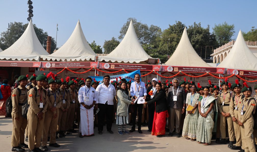 வாரணாசியில் 02.12.2025 முதல் 15.12.2025 வரை நடைபெற்று வரும் காசித் தமிழ்ச் சங்கமம் 4.0 நிகழ்ச்சியில் அமைந்துள்ள செம்மொழித் தமிழாய்வு மத்திய நிறுவன அரங்கிற்கு 09.12.2025 அன்று வாரணாசியில் உள்ள ஆர்.கே.ஜி.ஜி.சி. பெண்கள் உயர்நிலைப் பள்ளியைச் சேர்ந்த தேசிய மாணவர் படை மாணவிகள் வருகைபுரிந்தனர். அவர்களுக்குத் திருக்குறள் நூல் குறித்து அறிமுகம் செய்யப்பட்டு, அது குறித்த வினாடி வினாப் போட்டி நடத்தப்பட்டது. இப்போட்டியில் வெற்றிபெற்ற மாணவிகளுக்குச் செம்மொழி நிறுவனத்தின் இயக்குநர் பேரா. இரா. சந்திரசேகரன் அவர்கள் பரிசளித்து வாழ்த்தினார்.