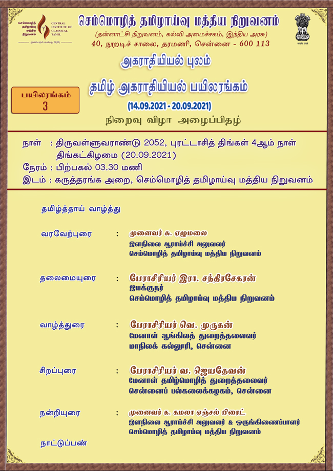 தமிழ் அகராதியியல் பயிலரங்கம் நிறைவு விழா அழைப்பிதழ்